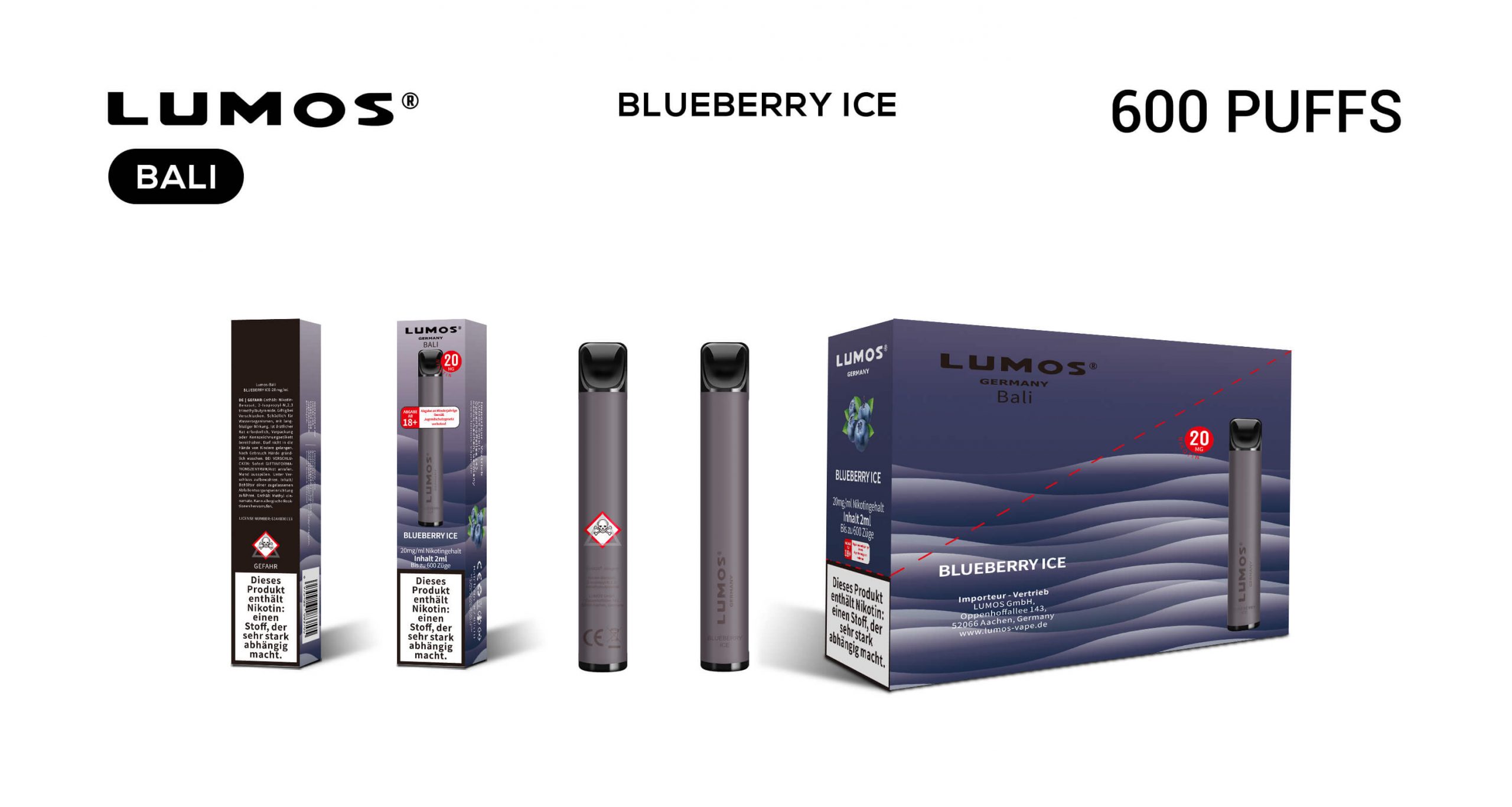 Erleben Sie den köstlichen Geschmack von Blueberry Ice. Süßer Geschmack aus der Kindheit für ein einzigartiges Dampferlebnis.