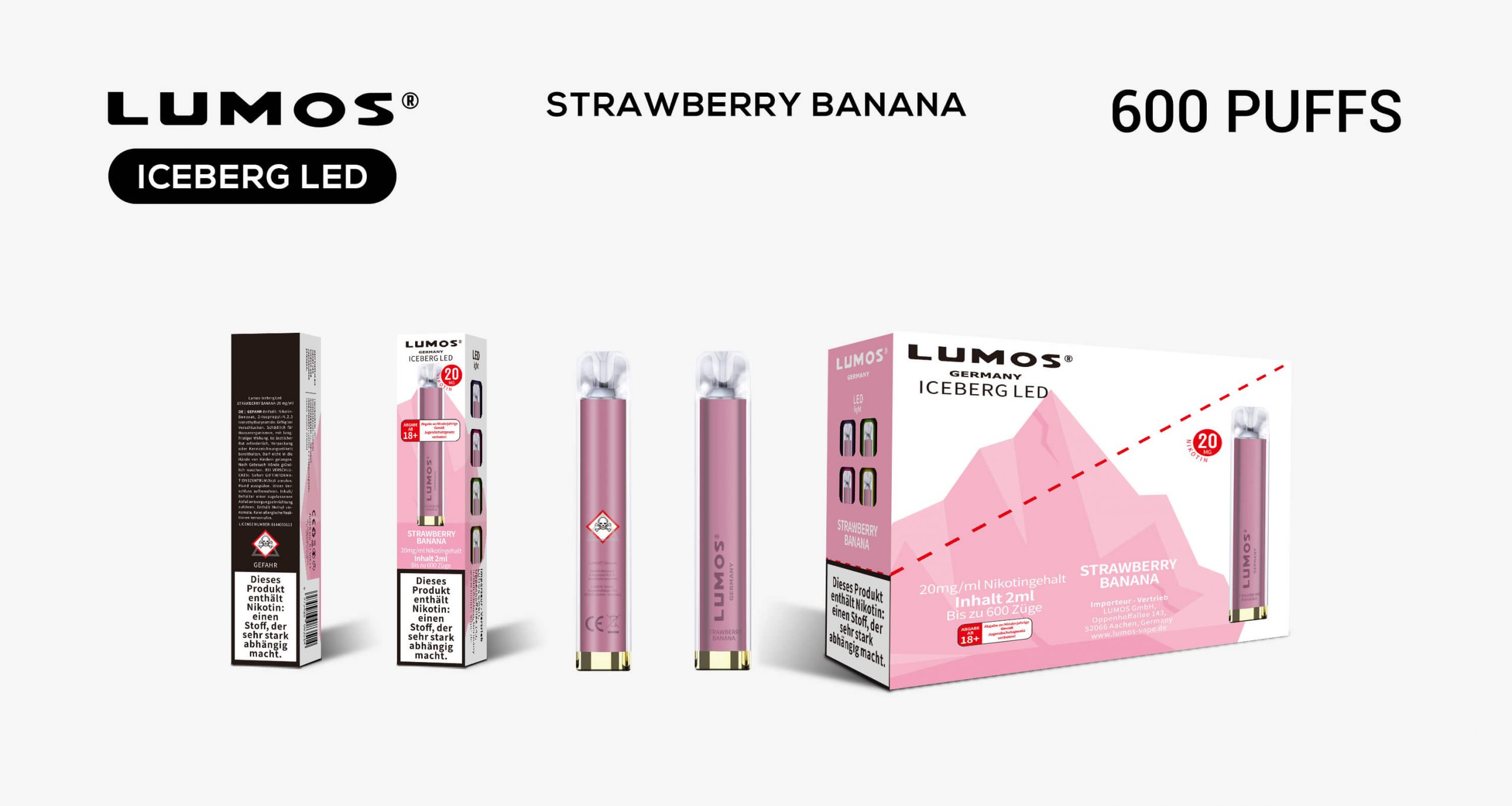Erleben Sie den köstlichen Geschmack von ICEBERG LED Strawberry Banana in einer stilvollen Optik und atemberaubenden LEDS. Süßer Geschmack aus der Kindheit für ein einzigartiges Dampferlebnis.